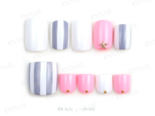 | ドットとボーダー柄のフレンチ。肌馴染みの良いカラーだと、ポップなデザインも上品で素敵ですね。 |